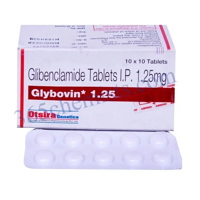 Glibenclamide is the active ingredient in the medication Glybovin 1.25 mg Tablet, which makes it an effective medication for managing blood sugar levels in people who have type 2 diabetes. Glybovin helps maintain optimal blood glucose control and reduces the risk of diabetes-related complications. It does this by stimulating insulin secretion and improving glucose utilisation. Be sure to follow the instructions for the dosage that is recommended, keep a close eye on your blood sugar levels at all times, and talk to your healthcare provider for individualised guidance and support. You will be able to take more active steps towards achieving better glycemic control and living a life that is both healthier and more fulfilling when you use Glybovin.