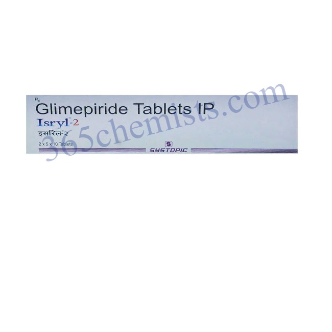 Isryl-2 Tablet, which contains glimepiride in a dosage of 2 milligrammes, is an effective drug for people who have type 2 diabetes. By encouraging the pancreas to produce more insulin, it contributes to the regulation of blood sugar levels. Isryl-2 Tablet, when used as directed and in conjunction with leading a healthy lifestyle, may help improve glycemic control and lower the risk of problems that are associated with diabetes. When using this drug, as with any other, it is essential to pay attention to the dosing recommendations and be aware of any potential adverse effects. Monitoring your blood sugar levels on a consistent basis and maintaining open lines of communication with your healthcare practitioner are both necessary components of optimal diabetes treatment. Make an appointment with your primary care physician to receive individualised guidance and recommendations from him or her regarding the use of Isryl-2 Tablet or any other medicine in your strategy for managing your diabetes. Individuals who with type 2 diabetes can live a life that is both healthy and satisfying provided they receive the appropriate treatment and control.