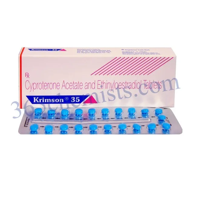- Reduction of Symptoms Caused by Androgens Androgens, such as testosterone, are frequently elevated in women who have polycystic ovary syndrome (PCOS), which causes symptoms such as excessive hair growth (hirsutism), acne, and male-pattern baldness. Because it functions as an anti-androgen, the cyproterone component of the Krimson 35 Tablet can assist in the alleviation of these symptoms by obstructing the actions of androgens within the body.