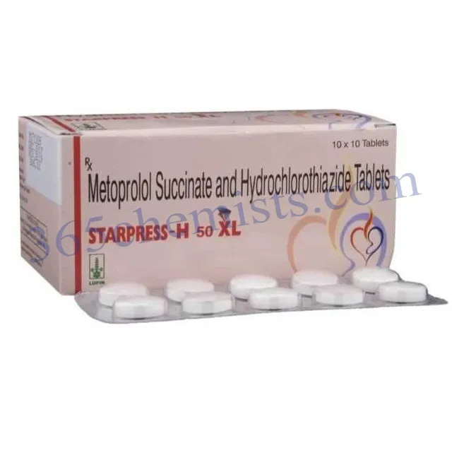 The combination medication known as Starpress-H 50 XL Tablet is prescribed to patients suffering from hypertension (also known as high blood pressure). Both metoprolol succinate and hydrochlorothiazide are present in this product as their respective active ingredients. This medication is helpful in lowering blood pressure and managing hypertension in an efficient manner. Before beginning the treatment, it is essential to have a thorough understanding of the correct application, dosage, precautions, and potential adverse effects of Starpress-H 50 XL Tablet.