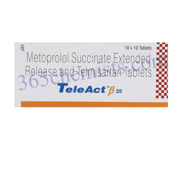 The combination medication known as Teleact Beta 25 Tablet contains both telmisartan and metoprolol succinate in its formulation. Metoprolol Succinate is a type of beta-blocker, whereas telmisartan is categorised as a member of the group of medications known as angiotensin II receptor blockers (ARBs). This combination is employed in the treatment of hypertension (also known as high blood pressure) as well as a number of conditions that affect the heart. In this article, we will discuss the applications of Teleact Beta 25 Tablet, as well as the dosage, potential adverse effects, and other essential information.