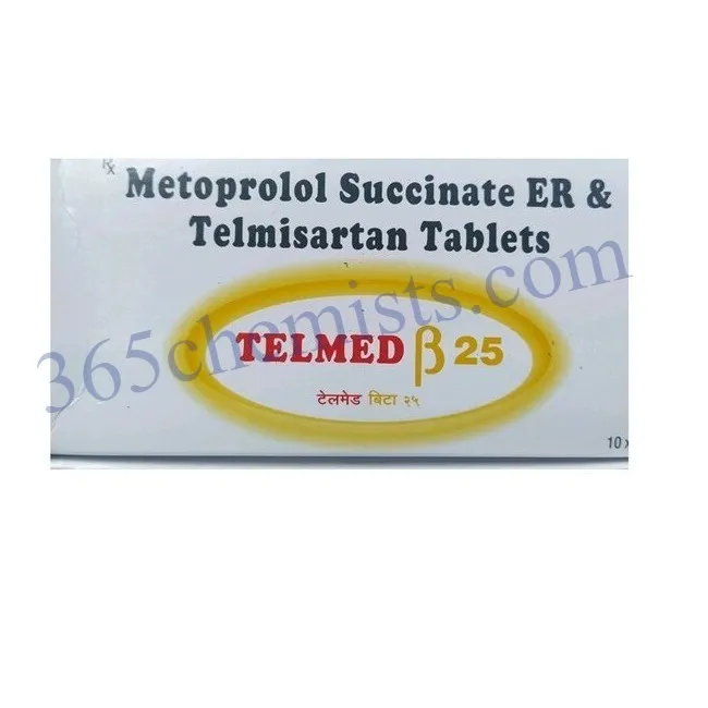 Telmed Beta 25 mg Tablet is a combination medication that is prescribed for the management of hypertension. This medication contains Telmisartan 40mg as well as Metoprolol Succinate. The Telmed Beta 25mg Tablet is able to effectively control blood pressure and reduce the risk of developing cardiovascular complications as a result of its combination of the actions of a beta-blocker and a blocker of the angiotensin II receptor. While you are taking Telmed Beta 25 mg Tablet, it is essential to adhere to the recommended dosage and keep up with regular follow-up appointments with a qualified medical professional. Telmed Beta 25mg Tablet plays a crucial role in the management of hypertension and promotes overall cardiovascular health. It does this by providing dual mechanisms for the control of blood pressure.