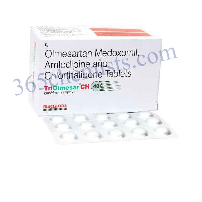 Triolmesar CH 40 Tablet is used to treat high blood pressure and reduce the risk of heart attack, stroke, and kidney damage.