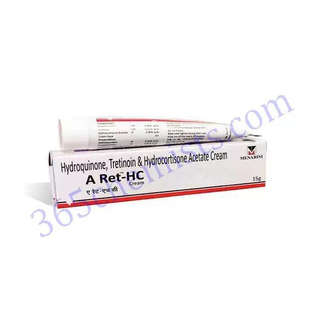 - The A Ret HC Cream 15 mg consists of three drugs – Hydrocortisone (corticosteroid), Hydroquinone (skin lightening agent), and Tretinoin (retinoids).