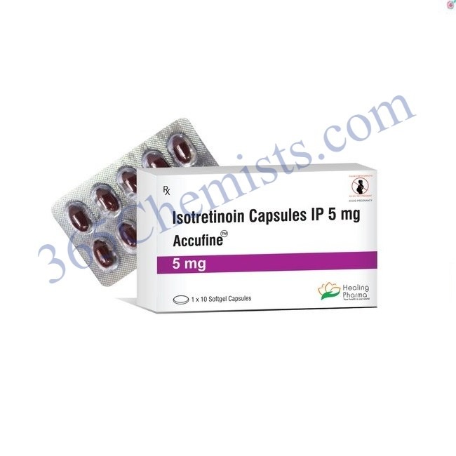 Accufine 5mg Capsule is used to treat severe and persistent acne that does not respond to other treatments.