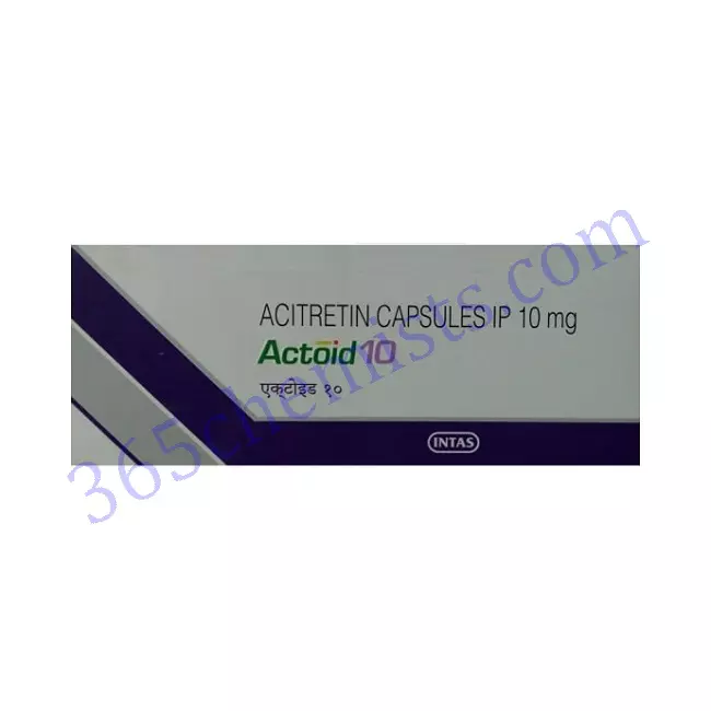 Drug-Drug Interactions: Actoid 10 Capsule 10’s should not be used in patients taking other retinoids or supplements containing vitamin A. Actoid 10 Capsule 10’s may interact with an antibiotic (tetracycline) and cause increased pressure in the brain. It may interact with a medicine used to treat cancer, psoriasis, or rheumatic diseases (methotrexate) and cause liver damage. It may decrease the efficacy of an antiepileptic drug (phenytoin). It may also interact with a mini-pill (a type of birth control pill with low doses of progesterone).