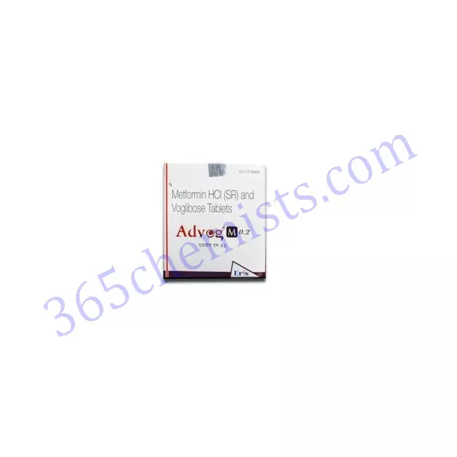 Metformin and Voglibose are the two active components of the combination drug Advog M 0.2 Tablet. For the management of type 2 diabetes mellitus, it is frequently recommended. Voglibose is an alpha-glucosidase inhibitor, while Metformin belongs to the biguanide class of drugs. Through a variety of methods of action, the combo drug aids in blood sugar regulation.