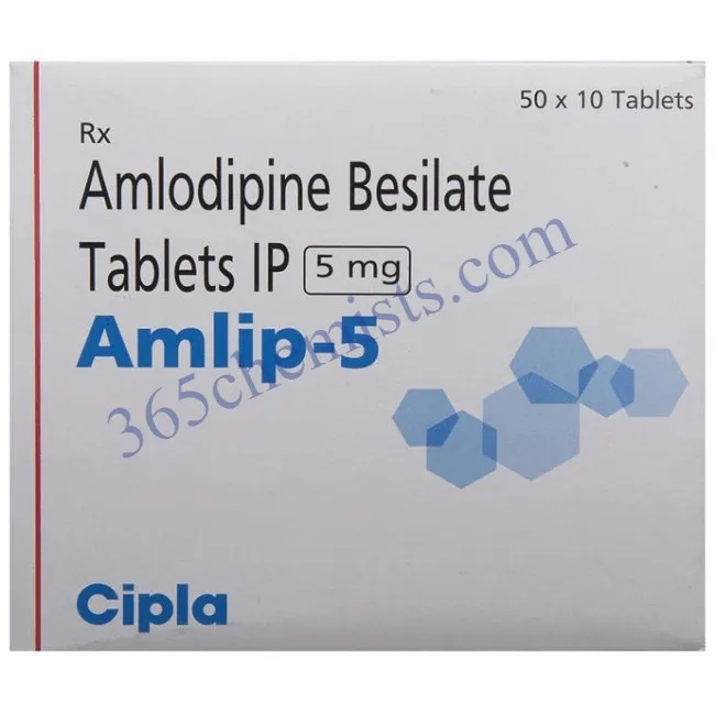 Amlip 5 MG Tablet is a medicine used for the treatment of high blood pressure. This medicine works by relaxing the blood vessels which make the blood flow easily, thus lowering the blood pressure. This will reduce your risk of heart attack or a stroke by making it easier for your heart to pump blood around your body.