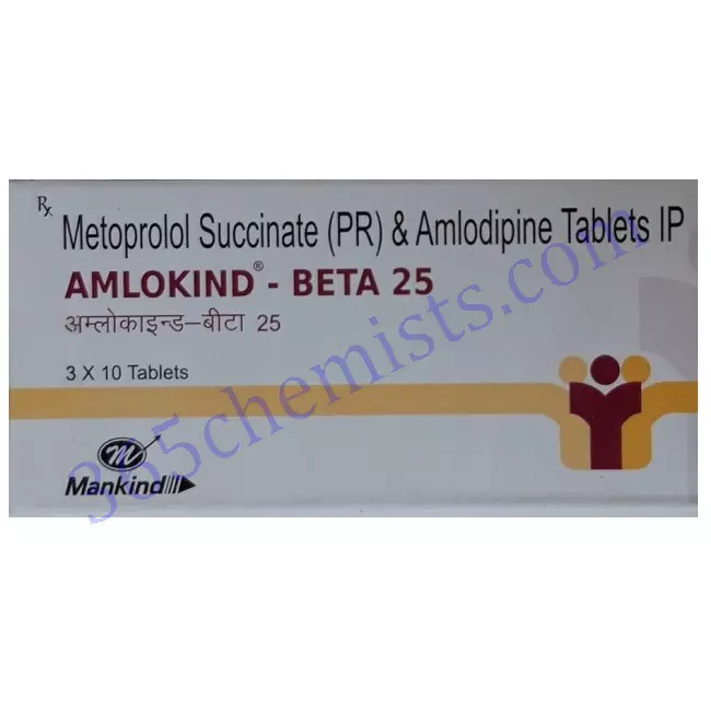 Home Heart & Blood Pressure Amlokind-Beta 25 Tablet (Amlodipine 5mg/Metoprolol Succinate 25mg)