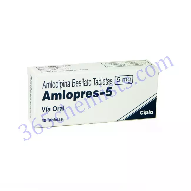 Amlopres 5mg Tablet is an effective drug for treating angina and controlling hypertension. Amlodipine Besylate, the medication’s active component, aids in lowering blood pressure and enhancing heart blood flow. You can conveniently buy Amlopres 5mg Tablet from a reputable online pharmacy like 365Chemists.com and enjoy low prices on high-quality drugs. Before beginning any new medication, you must, however, speak with your doctor to make sure it is appropriate for your unique condition.The medication Amlopres 5mg Tablet (Amlodipine Besylate) is frequently used to treat hypertension. It helps lower the risk of complications linked to high blood pressure by lowering blood pressure and enhancing blood flow. To achieve the best blood pressure control, it is crucial to combine medication and lifestyle changes. A thorough treatment strategy should include techniques for stress reduction, weight management, regular exercise, and healthy eating. Always seek the advice and direction of your healthcare provider for specific advice and direction.