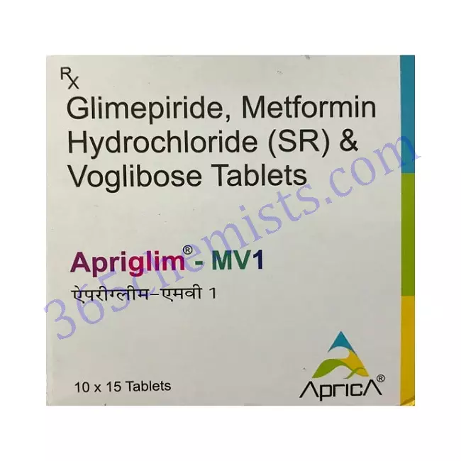 Glimepiride, Metformin, and Voglibose are the three active constituents in the combination drug Apriglim MV 1mg Tablet. It mostly aids in blood sugar regulation for treating type 2 diabetes mellitus. To achieve the best possible diabetic management, this drug offers the advantages of numerous mechanisms of action.