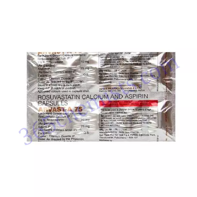 - Reduction of the Risk of Cardiovascular Disease: Arvast-A 75 Capsule provides a comprehensive approach to the reduction of the risk of cardiovascular disease by targeting both cholesterol levels and platelet function. The risk of cardiovascular events like heart attacks and strokes can be dramatically reduced by lowering LDL cholesterol and decreasing platelet aggregation.