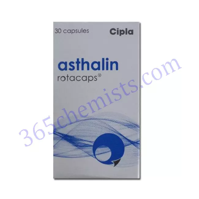 Asthalin 200 mcg Rotacap is a bronchodilator medicine that is used to relieve the symptoms of bronchospasm such as wheezing, shortness of breath, chest tightness, breathing difficulties, coughing, etc., in patients with reversible obstructive airway disease. It also helps to prevent allergen or exercise-induced bronchospasm (constriction of the airways of the lungs).