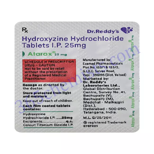 An antihistamine drug called Atarax 25mg Tablet is used to treat anxiety and allergy symptoms. It is crucial to take the medication as directed and adhere to your doctor’s instructions. For specific guidance regarding Atarax 25mg Tablet, speak with your doctor if you have any questions or concerns.An antihistamine drug called Atarax 25mg Tablet is used to treat anxiety and allergy symptoms. It functions by obstructing histamine’s effects, a chemical that triggers allergic reactions. It’s crucial to take Atarax exactly as your doctor has instructed and pay close attention to the directions. Ask your doctor for specific guidance if you have any queries or worries regarding the drug.