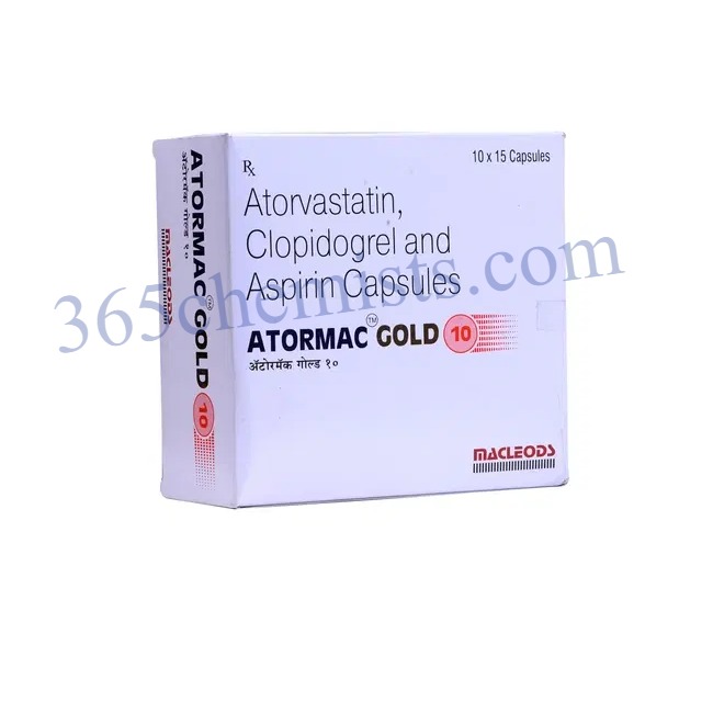 Aspirin and atorvastatin are both components of the drug that makes up the combination that is known as Atormac Gold 10 Capsule. Individuals diagnosed with specific cardiovascular diseases receive a prescription for this one-of-a-kind combination in order to better manage their health and lower their chance of experiencing a cardiovascular event. Each individual ingredient in Atormac Gold 10 Capsule contributes, in concert with the others, to the product’s overall capacity to safeguard the cardiovascular system.