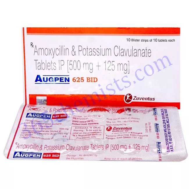 An effective antibiotic that is utilised in the treatment of a wide variety of bacterial infections is known as Augpen 625 mg BID Tablet (Amoxicillin 500mg/Clavulanic Acid 125mg). Because it contains both amoxicillin and clavulanic acid, it possesses a wide range of activity and enhanced effectiveness against bacteria that have become resistant to other antibiotics. In order to achieve the best possible results from treatment, it is essential to take into account such factors as strictly adhering to the recommended dosage, seeing the treatment through to its completion, and being aware of any potential adverse effects. The Augpen 625 mg BID Tablet is a helpful option for warding off bacterial infections and fostering overall health and well-being as it works to improve overall health. It is absolutely necessary to maintain routine follow-up appointments with one’s healthcare providers in order to guarantee appropriate guidance, monitoring, and management of bacterial infections.