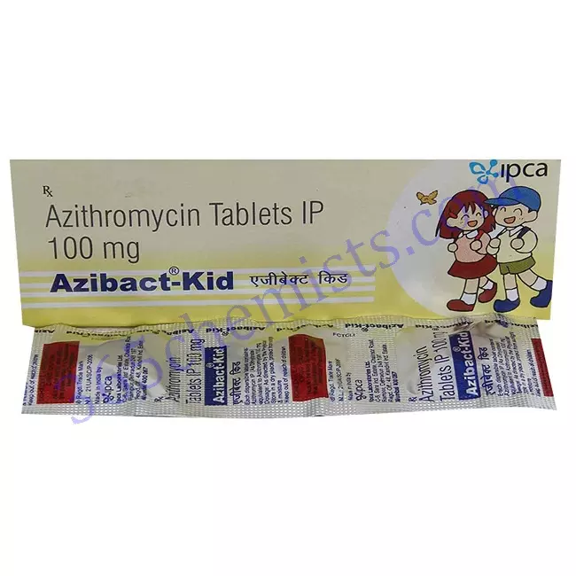 An effective and dependable antibiotic that is designed specifically for use with children, the Azibact Kid 100mg Tablet contains azithromycin as its active ingredient. Azibact Kid 100mg Tablet is a trusted choice for the treatment of respiratory tract infections, skin and soft tissue infections, and certain sexually transmitted infections in children among healthcare professionals due to its broad-spectrum activity and favourable safety profile. When treating paediatric patients with Azibact Kid 100mg Tablet, it is critical to adhere to the recommended dosage and discuss any worries or adverse effects with a qualified medical professional.