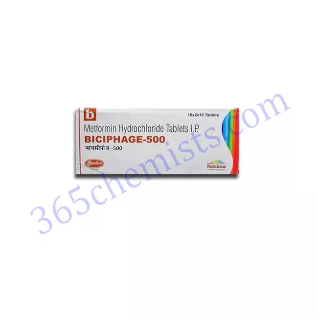 You should take Biciphage 500mg Tablets exactly as directed by your doctor. Depending on your particular requirements, health situation, and reaction to therapy, the dosage may change. To reduce gastrointestinal adverse effects, it is often taken orally with or after meals. It’s crucial to adhere to the suggested dosage regimen and avoid going overboard. The dosage may be changed over time by your healthcare professional to reach the optimal blood sugar management. Without first talking to your doctor, do not stop taking Biciphage 500mg Tablet, as doing so suddenly can cause your blood sugar levels to rise.