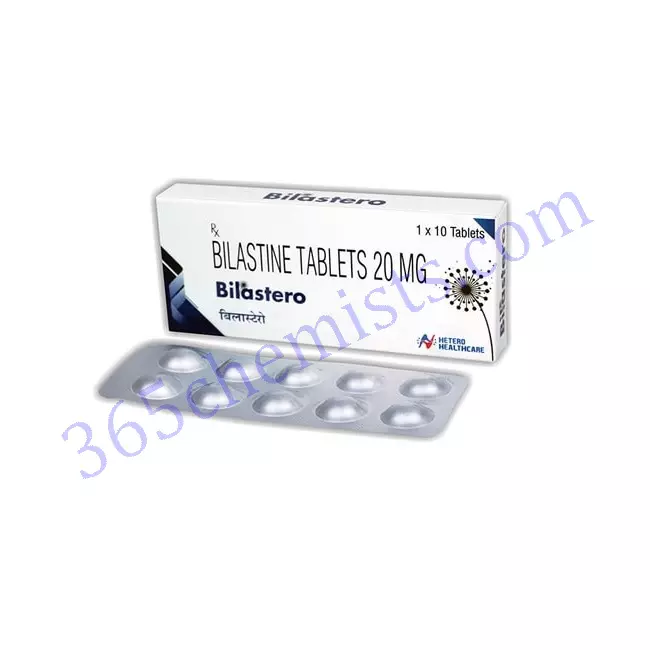 - Bilastero 20mg Tablet Offers Effective Relief from Common Allergy Symptoms The Bilastero 20mg Tablet offers effective relief from common allergy symptoms such as sneezing, itching, nasal congestion, and watery eyes. Bilastine helps alleviate discomfort and enables individuals to experience an improved quality of life during allergy seasons or when exposed to specific allergens. This is accomplished by blocking the action of histamine, which is a chemical that causes allergic reactions.