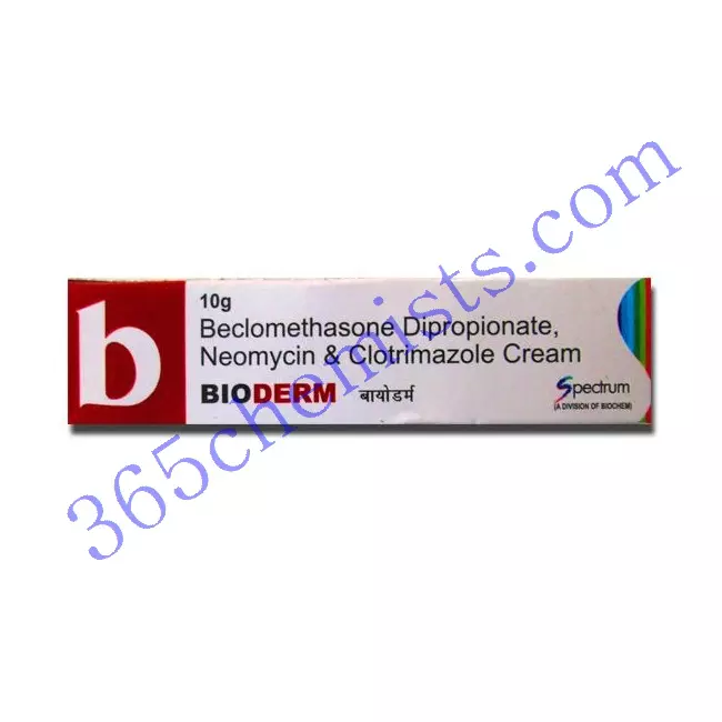 Bioderm Ointment is a potent glucocorticoid with minimal mineralocorticoid action. It decreases inflammation by inhibiting the migration of leukocytes and reduces the permeability of capillaries and inhibiting prostaglandins and other inflammatory mediators. Also, it works by binding to the 30S subunit of the bacterial ribosomes thus inhibits the protein synthesis in the bacteria and stops the growth of the bacteria. Lastly, this medicine inhibits certain enzymes and also prevents DNA replication. However, not much else is known regarding the mechanism of action of the same medication.