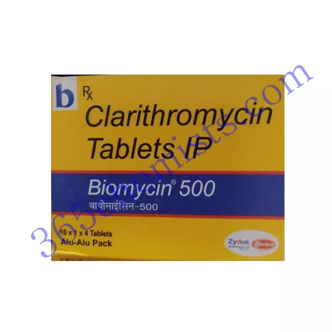 The Biomycin 500mg Tablet, also known as Clarithromycin 500mg, is an antibiotic medication that is frequently prescribed for a variety of bacterial infections. It is essential to take the medication exactly as directed and see through the full course of treatment in order to guarantee that the infection will be eliminated completely. It is essential to be aware of any potential severe side effects and seek medical assistance if they manifest themselves, even though the majority of side effects are mild and only temporary. You can ensure that using Biomycin 500mg Tablet in a way that is both safe and effective by having a conversation with your healthcare provider about any preexisting medical conditions and medications. Always seek the advice of a qualified medical professional for personalised guidance concerning your unique medical requirements.