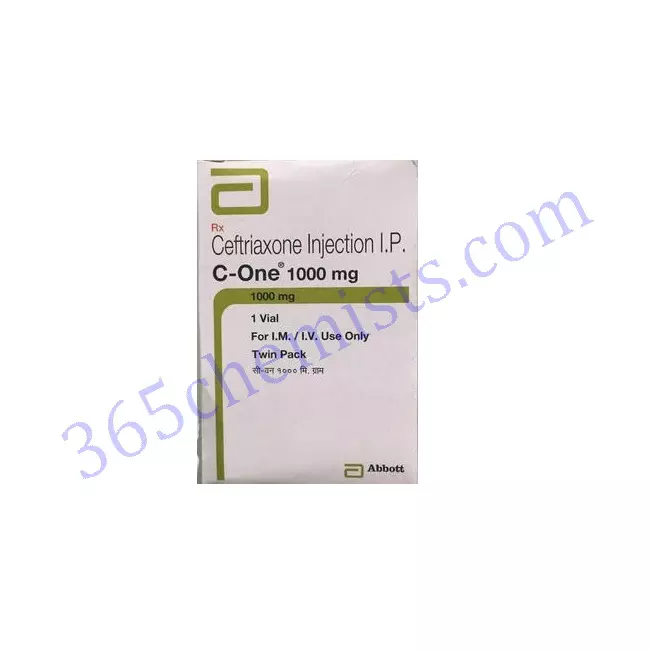 Ceftriaxone is an antibiotic that is classified as a member of the class known as cephalosporins. The medication known as C One 1gm Injection contains this antibiotic as its active ingredient. It is an effective antibiotic with a wide range of activity that can be used to treat a variety of bacterial infections. C One 1gm Injection is given intravenously and is typically prescribed by medical professionals for the treatment of serious infections that require prompt and effective care.