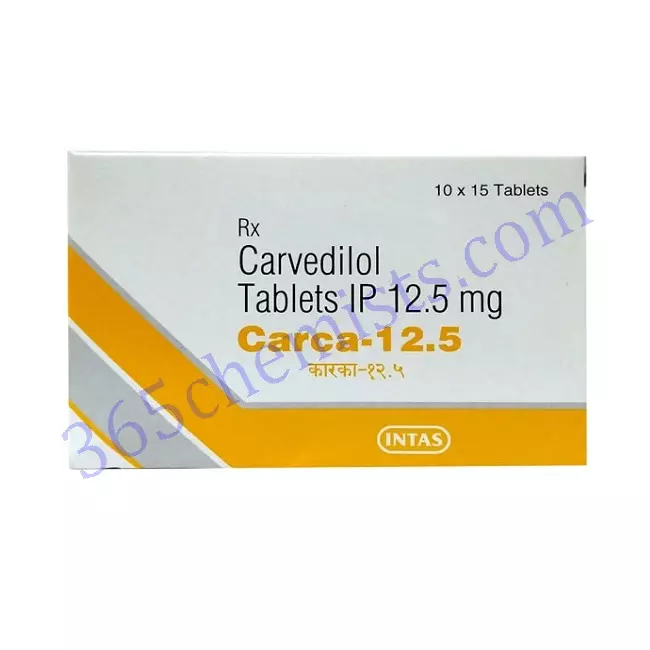 A drug called Carca12.5mg Tablet is used to treat heart failure and hypertension (high blood pressure). It is a member of the beta-blocker drug class and lowers blood pressure and heart rate by blocking specific receptors in the heart and blood vessels. This helps to lessen the strain on the heart and increase its effectiveness.