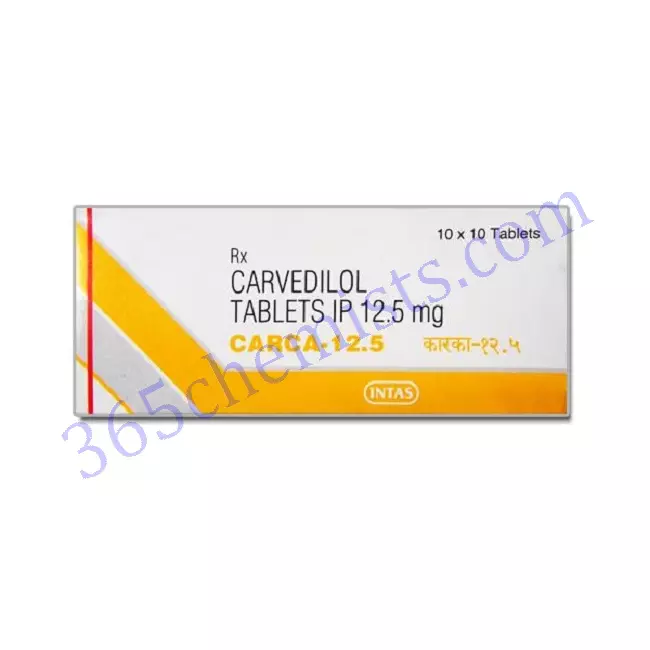 A drug called Carca12.5mg Tablet is used to treat heart failure and hypertension (high blood pressure). It is a member of the beta-blocker drug class and lowers blood pressure and heart rate by blocking specific receptors in the heart and blood vessels. This helps to lessen the strain on the heart and increase its effectiveness.