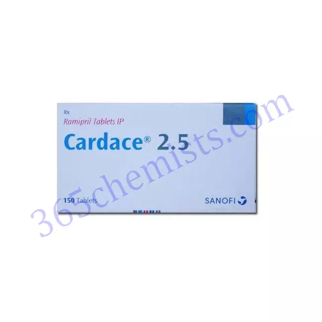 The medication known as Cardace 2.5 Tablet is formulated with the active component Ramipril and comes in a dosage of 2.5 milligrammes per tablet. People who suffer from hypertension (also known as high blood pressure) and other cardiac disorders are frequently given prescriptions for this particular pharmacological formulation. An inhibitor of the angiotensin-converting enzyme is what’s known as an ACE inhibitor, and ramipril is a member of that class of drugs. Cardace 2.5 Tablet works to enhance overall cardiovascular health by reducing the effect of ACE, which in turn helps to relax blood vessels, lower blood pressure, and improve overall cardiovascular health.