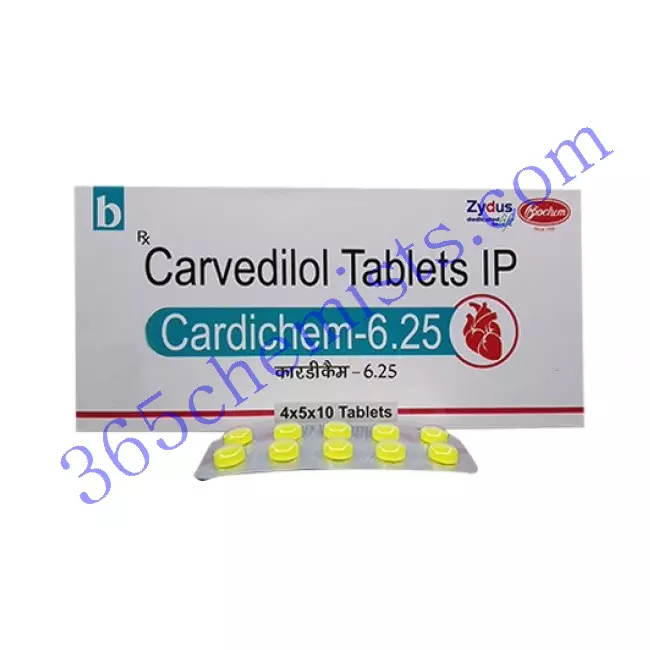 Cardichem 6.25mg Tablet is a commonly prescribed drug for the treatment of congestive heart failure and high blood pressure. It helps to lower blood pressure, lessen the strain on the heart, and enhance overall cardiovascular function by successfully blocking specific receptors in the body. However, it’s crucial to take Cardichem 6.25mg Tablet exactly as your doctor instructs and to adhere to all safety guidelines. Ask your healthcare provider for specific advice if you have any worries or questions about the medication. To make sure the medication is working as intended and to catch any potential side effects, regular check-ups and monitoring are crucial.