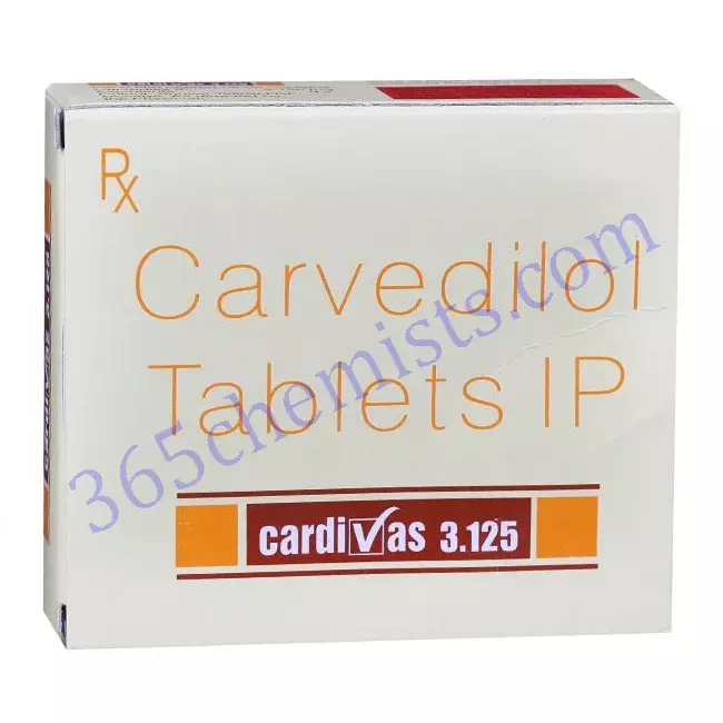 An antihypertensive drug called Cardivas 3.125 Tablet (Carvedilol) is also used to treat congestive heart failure and left ventricular dysfunction after a heart attack. It lessens symptoms brought on by these conditions and helps lower blood pressure and heart function. It is crucial to follow the recommended dosage, take the medication as directed by a healthcare provider, and be aware of any possible side effects. You can ensure the secure and efficient use of Cardivas 3.125 Tablet by adhering to the directions and precautions. Consult your healthcare provider for more information if you have any worries or inquiries.