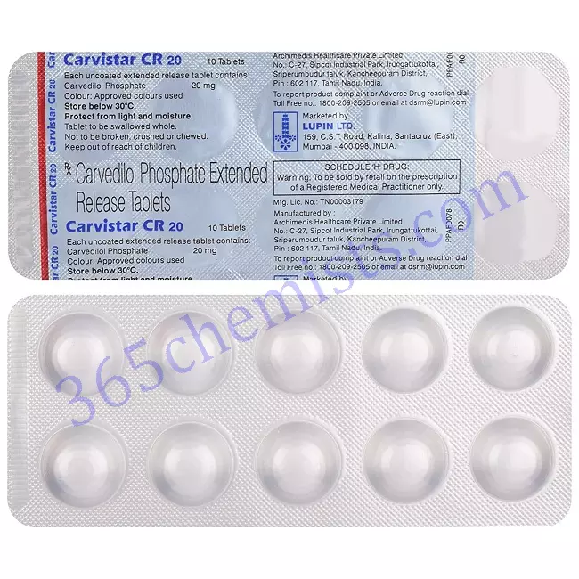 It’s important to follow your doctor’s recommendations when using Carvistar CR 20mg Tablet. Do not hesitate to speak with your doctor or chemist if you have any concerns or questions about the medication.