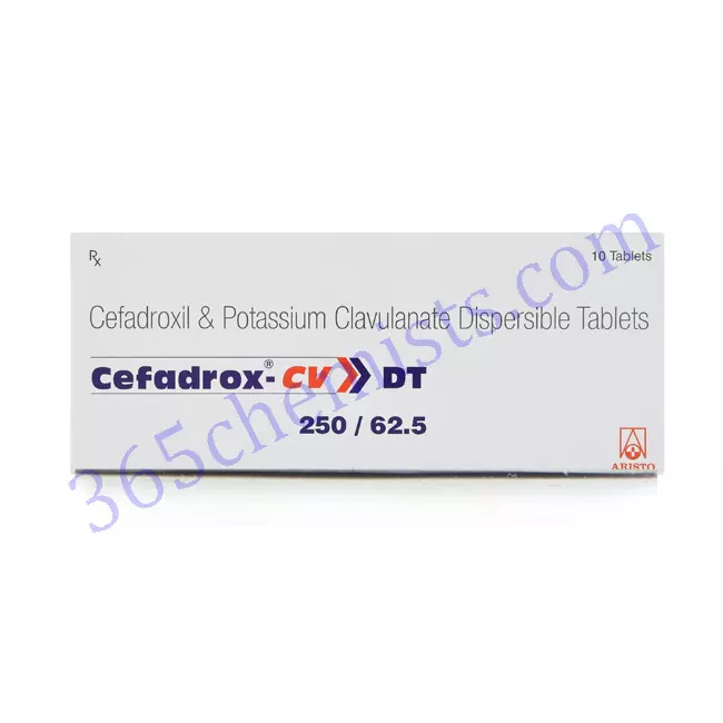 - Cefadrox CV 250mg/62.5mg Tablet DT is formulated as a dispersible tablet, which means that it can be easily dissolved in water for the purpose of administration. This makes it a convenient form of dosage. This dosage form is especially helpful for people who have trouble swallowing tablets, like children or people with certain medical conditions.