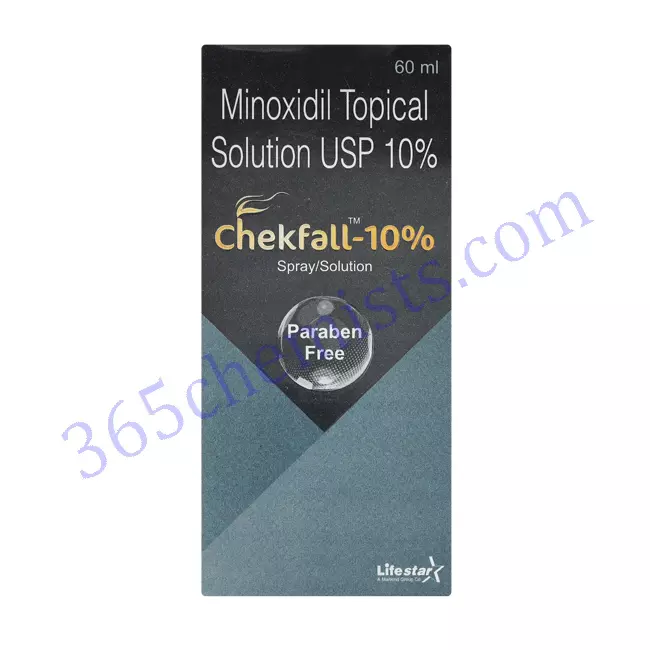 - Chekfall-10% Spray/Solution is a useful treatment for treating hair thinning and slowing down the progression of hair loss. It is also helpful in preventing further hair loss. Minoxidil helps to prevent further hair thinning by revitalising weakening hair follicles and enhancing blood circulation. This helps to retain the current hair and reduces the visual consequences of hair loss. Minoxidil is available over-the-counter in most countries.