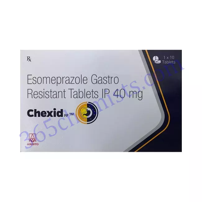 Acid-related stomach disorders can be effectively treated with Chexid -RF Tablet (Esomeprazole 40mg). It offers relief from the symptoms of GERD, acid reflux, and stomach ulcers thanks to its powerful formulation and successful outcomes, enabling users to restore control over their gastrointestinal health and enhance their general well-being.