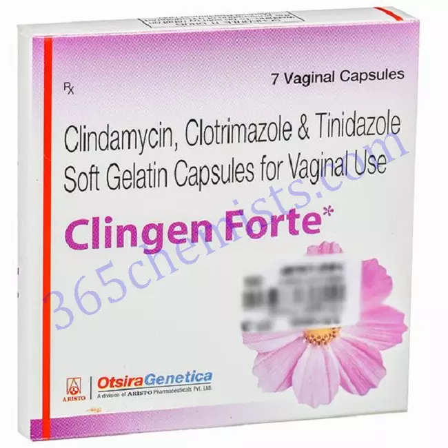 - Comprehensive Approach to Vaginal Health The Clingen Forte Vaginal Capsule provides a comprehensive approach to the health of the vaginal canal. Clindamycin, Clotrimazole, and Tinidazole together are effective against a wide variety of microorganisms, including bacteria, fungi, and protozoa. This all-encompassing action guarantees an effective treatment for various vaginal infections and provides relief from those infections.