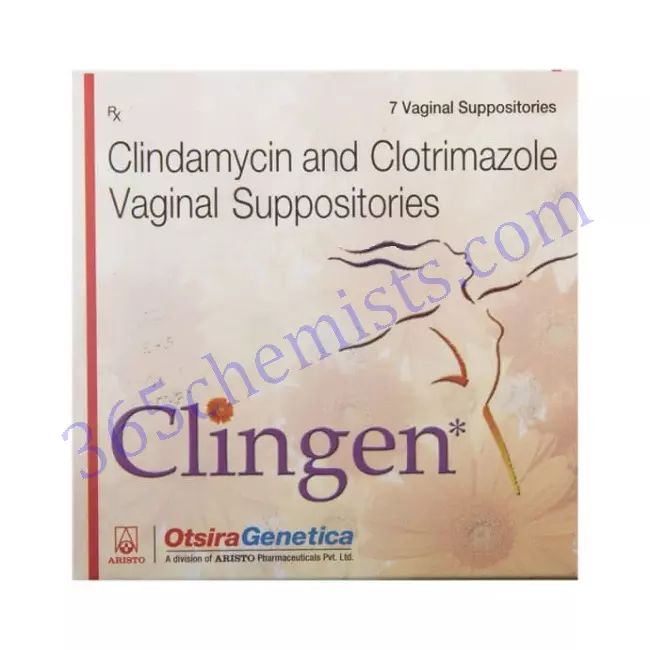 1. Dual Action: In order to effectively treat vaginal infections, the Clingen Vaginal Suppository works in two different ways. This comprehensive treatment for a wide variety of infections is provided by the combination of clindamycin and clotrimazole, which attacks both the bacterial and fungal causes of the condition.