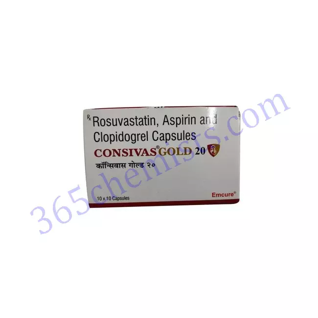 Consivas Gold 20 Capsule is a drug that requires a doctor’s prescription and combines the beneficial effects of two active substances, namely rosuvastatin and aspirin. Platelet aggregation and cholesterol management are all aspects of cardiovascular health that are targeted by this particular formulation, which is why it is capable of offering such comprehensive protection. Consivas Gold 20 Capsule is a dependable option for lowering the risk of adverse cardiovascular events. Each capsule contains a dosage of aspirin with 75 milligrammes and rosuvastatin with 20 milligrammes.