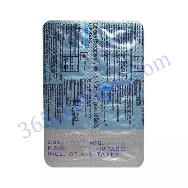 It is possible for the recommended dosage of Corcal D 400mg Tablet to change depending on the individual’s requirements as well as the recommendations of a qualified medical professional. Oral administration with water is the most common method, and taking it with food is recommended for optimal absorption. It is critical to take the medication exactly as prescribed by a medical expert, both in terms of the dosage and the amount of time it should be taken.
