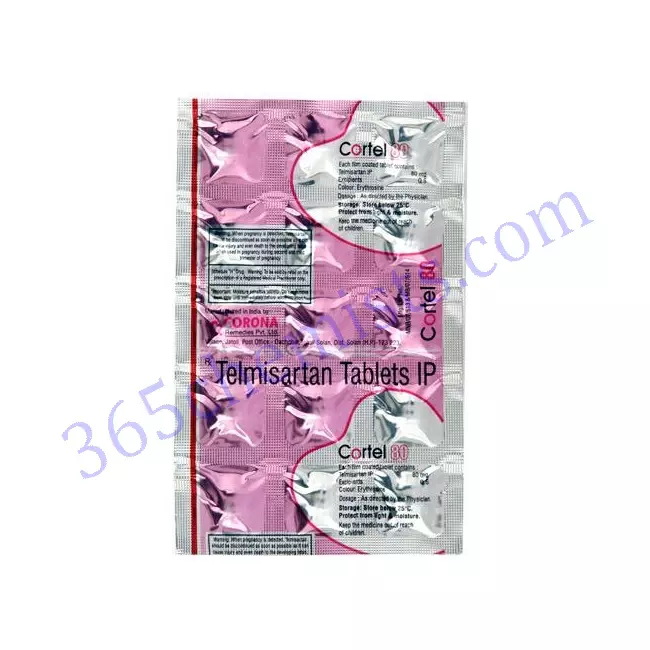 Telmisartan in an amount equal to 80 milligrammes is included in each Cortel 80 Tablet. One pill should be taken orally once daily, either with or without meals. This is the recommended dosage for the majority of patients. However, the dosage may change depending on the features of the individual patient, such as age, renal function, and the medications that are being taken at the same time. It is extremely important to take the medication exactly as directed by the doctor and to discuss any questions or concerns regarding the dosage with a qualified medical practitioner.