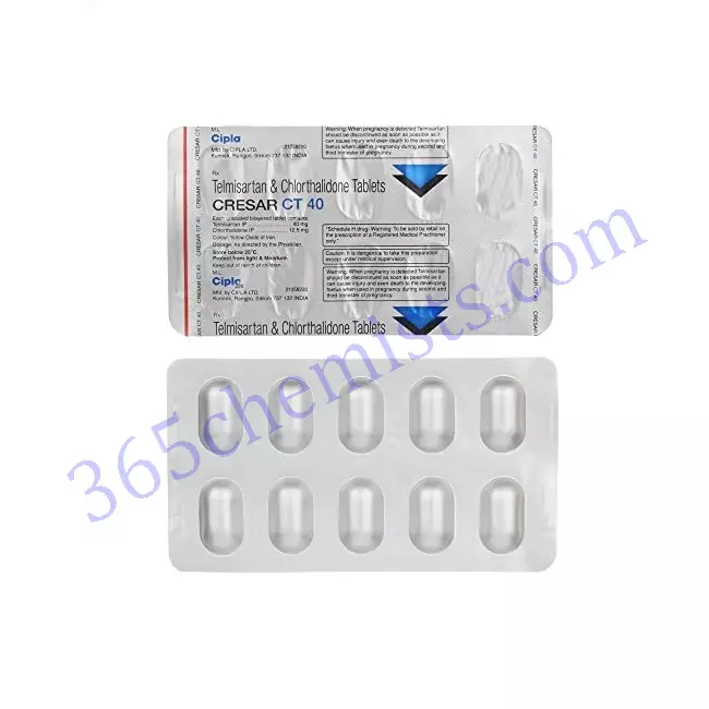 Cresar CT 40 Tablet belongs to a family of drugs that are used to treat high blood pressure. It is also effective in reducing the risk of serious conditions such a stroke, heart attacks, heart conditions and even death. Cresar CT 40 Tablet helps maintain optimal blood pressure levels in a person’s body.