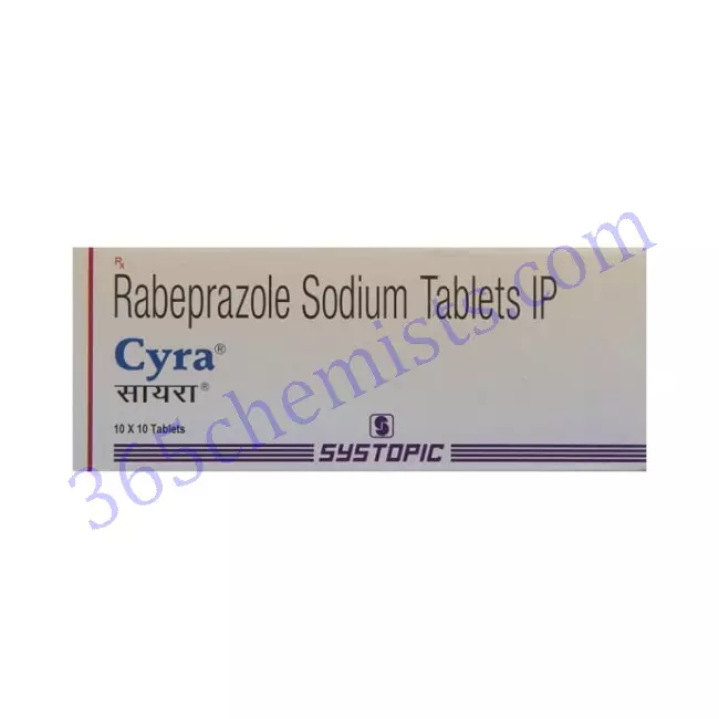 Cyra 20 MG Tablet is an anti-ulcer medicine that contains Rabeprazole. It is used to treat acid-related conditions of the stomach and intestine such as acid reflux, peptic ulcers, and some other stomach conditions associated with excessive acid production. It works by reducing the amount of acid produced in your stomach.