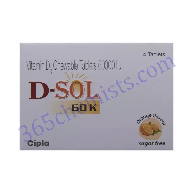- The D-Sol 60K Chewable Tablet comes in a flavour that is delectable, which makes taking it feel like more of a reward than a chore. This can be especially helpful for children or other individuals who might have difficulty with other forms of supplementation, as it encourages compliance and regular supplementation, which can be especially beneficial for those populations.