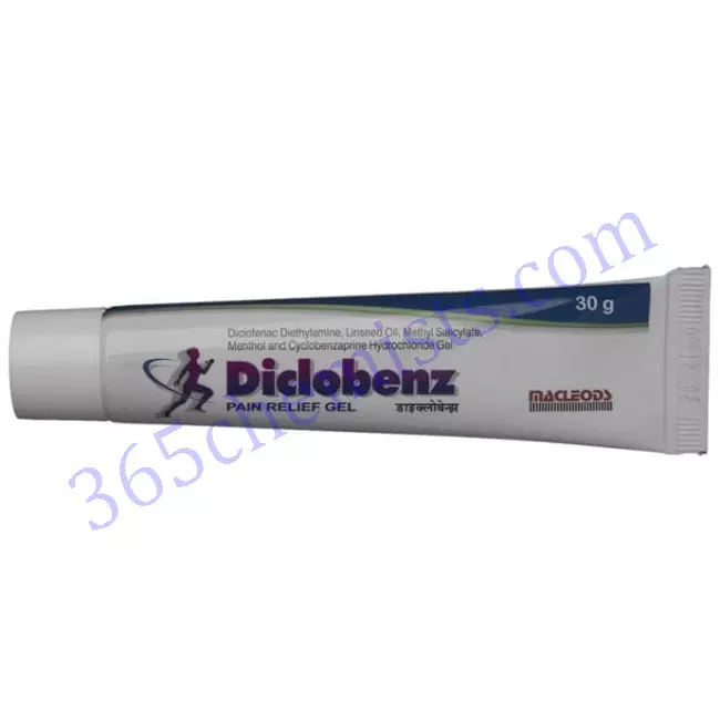 The active component in Diclobenz Gel is cyclobenzaprine, which is a muscle relaxant. Muscle relaxants help relieve the pain and discomfort that are associated with muscle spasms, strains, and sprains. Even though the gel is typically consumed orally, the formulation makes it possible for direct application to the affected area, which provides localised pain relief. Cyclobenzaprine’s mechanism of action involves the blocking of nerve impulses, the reduction of muscle contractions, and the promotion of relaxation. As a result, both pain and mobility are improved.