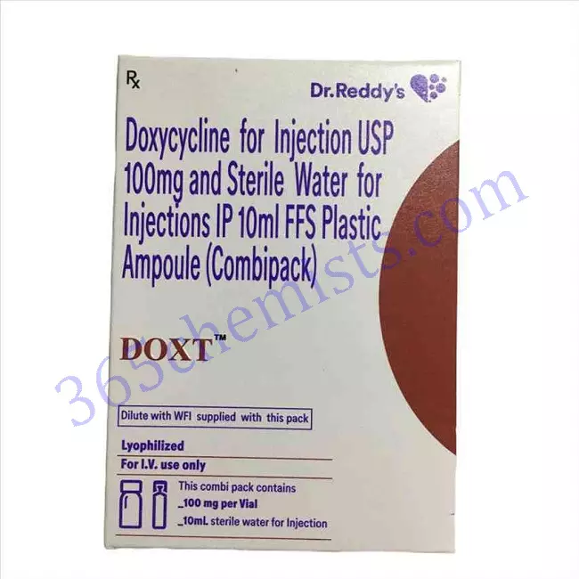 Antibiotic medication known as Doxt 100mg Injection, which contains 100mg of doxycycline, is used to treat a wide variety of bacterial infections. This medication is very effective. Because of its broad-spectrum activity and ability to inhibit the protein-synthesis process in bacteria, it is an indispensable weapon in the fight against infections. It is essential to use Doxt 100mg Injection in accordance with the instructions provided by a medical professional and to be aware of any potential adverse effects or precautions. Doxt 100mg Injection can contribute to the successful treatment of bacterial infections and aid in the restoration of health if the recommended dosage and necessary precautions are followed.