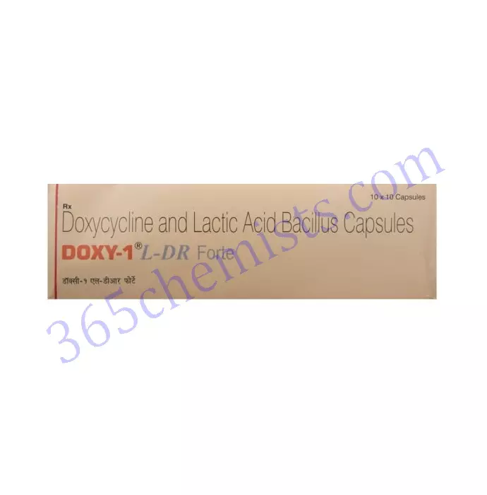 Doxycycline, the active ingredient in Doxy-1 L-Dr Forte Capsule, is an effective antibiotic medication that is used for the treatment of a wide variety of infections. The inhibition of bacterial protein synthesis, which leads to the inhibition of bacterial growth, is the mechanism of action that this compound utilises. It is recommended for use in the treatment of infections of the respiratory tract, urinary tract, sexually transmitted infections, infections of the skin, and infections of soft tissue. A qualified medical professional should evaluate the patient’s condition before deciding on the appropriate dosage and method of administration. Doxy-1 L-Dr Forte Capsule is generally well tolerated; however, it has the potential to cause gastrointestinal disturbances and increased photosensitivity in some patients. Individuals who are known to have allergies, as well as women who are pregnant or breastfeeding, should always exercise caution. The Doxy-1 L-Dr Forte Capsule is an essential component in the successful management of bacterial infections, as it alleviates symptoms and speeds up the healing process.