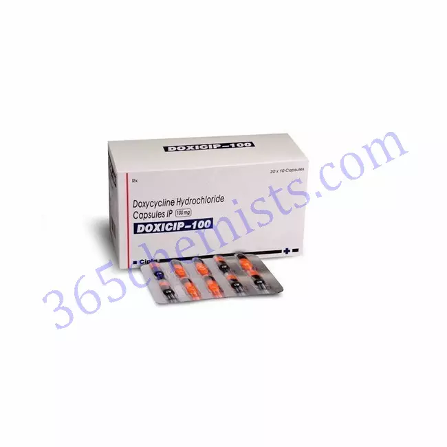 Doxicip 100mg Capsule is an antibiotic medicine used to treat bacterial infections in your body. It is effective in some infections of the lungs, urinary tract, eyes, and others. It kills bacteria, which helps to improve your symptoms and cure the infection. It may also be used for the treatment of severe acne.