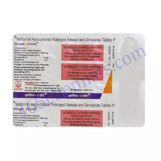 Home Diabetes Duopil 2 Forte Tablet (Glimepiride 2mg/Metformin 1000mg)