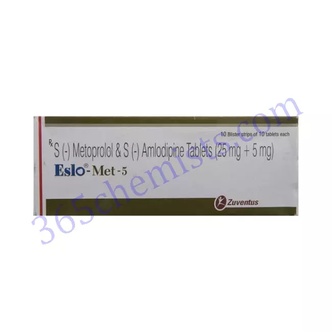 Eslo Met 5mg Tablet (Amlodipine 5mg/ Metoprolol Succinate 25mg)