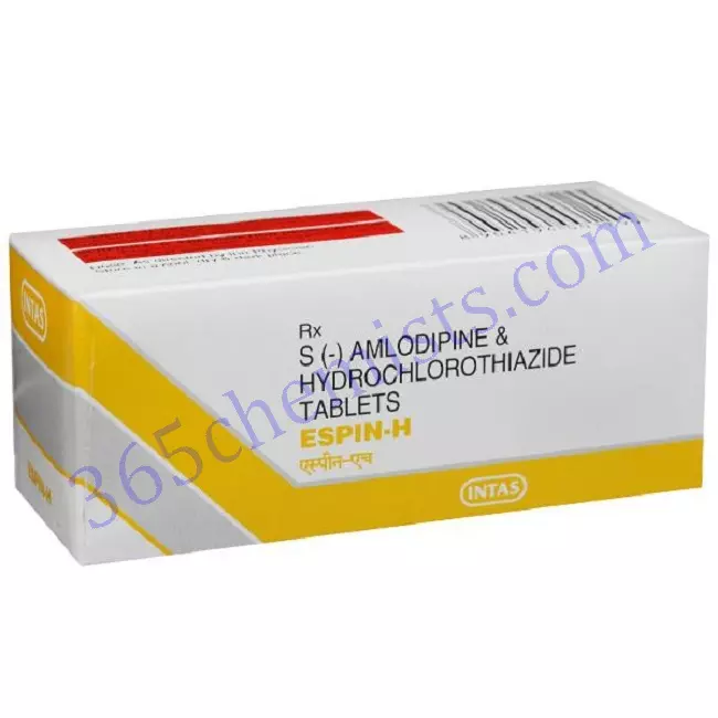 Amlodipine and hydrochlorothiazide are the two active components that are included in each tablet of Espin H Tablet, which is a combination drug. This page will provide a summary of Espin H Tablet, including its advantages, applications, recommended dosages, potential adverse effects, and safety considerations. Individuals who are able to effectively manage their blood pressure are those who have a solid understanding of how the Espin H Tablet operates.
